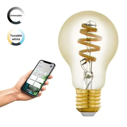 La Eglo Connect.Z Smart LED Pera E27 Filamento Ambra 4.9W 360lm - 827-865 Regolabile Bianca | Dimmerabile - Sostitutiva 25W è la perfetta sostituzione per la tua lampada convenzionale 25W con attacco E27 grazie alla sua tecnologia LED. Passare a LED ti offrirà tanti vantaggi!