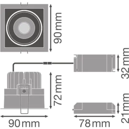Descrizione Ledvance Downlight LED Performance Nero 8W 650lm 40D - 830 Luce Calda | 90x83mm
