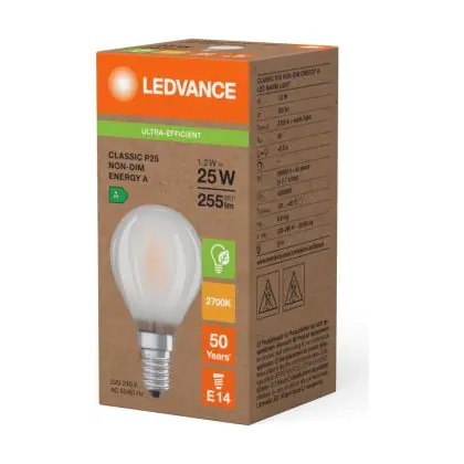 Risparmierai fino al 90% sui costi energetici e di mantenimento, grazie al basso consumo di energia assorbita dai 1.2W e ad una vita media utile di 50000 ore. A confronto: le lampade ad incandescenza tradizionali durano solamente 1000 ore. L’installazione delle lampadine LED è molto semplice: basta svitare le vecchia lampadina E14 a freddo ed avvitare la nuova lampada Ledvance Pera. Questo prodotto possiede la garanzia di qualità offerta da Ledvance e prezzi accessibili che partono da . Potrai utilizzare queste lampade usufruendo della Garanzia Totale Lampadadiretta.it di 5 anni.