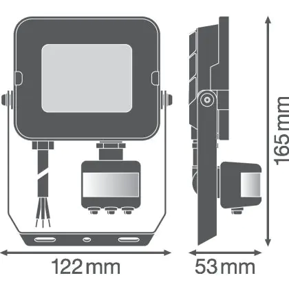 Descrizione Ledvance Proiettore LED Compatto Nero 20W 1800lm 100D - 830 Luce Calda | IP65 - Simmetrico - Sensore di movimento e luce