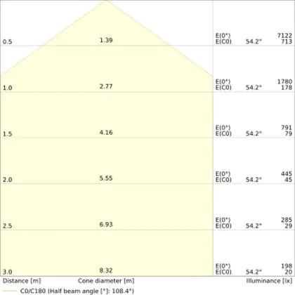 La temperatura di colore di questo apparecchio è . Per le aree in cui la luce naturale è scarsa o assente, consigliamo una temperatura di colore di 6500 Kelvin, ovvero luce bianca come quella del giorno. La luce di 4000 Kelvin (bianco freddo) è una tonalità naturale e si adatta a molte situazioni lavorative e di studio. Una temperatura di colore di 3000 Kelvin (bianco caldo) è perfetta per spazi come un ingresso, un corridoio, una tromba delle scale o una galleria.