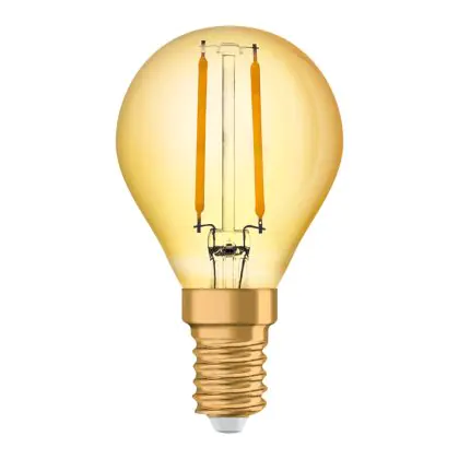 Descrizione Osram Vintage 1906 LED E14 Sferica Filamento Oro 2.5W 220lm - 824 Bianco Molto Caldo | Sostitutiva 25W