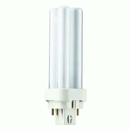 Philips PL-C 10W 830 4P è una lampada fluorescente compatta a basso contenuto di mercurio efficiente con attacco a 4 pin G24q-1. Questa lampada firmata Philips assicura prestazioni luminose fino a 10.000 ore che equivalgono a 3 anni con un utilizzo giornaliero di 8 ore.